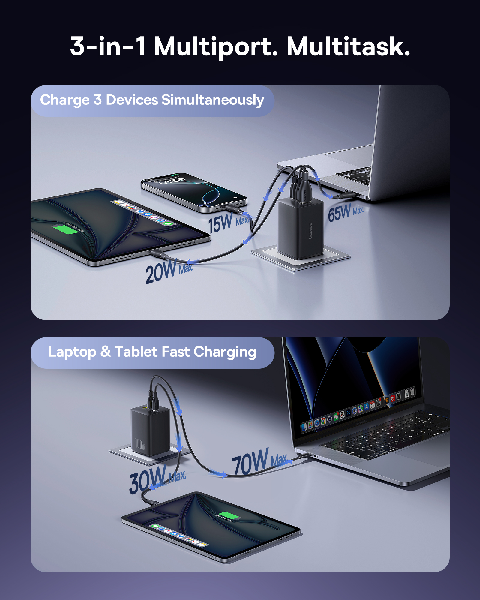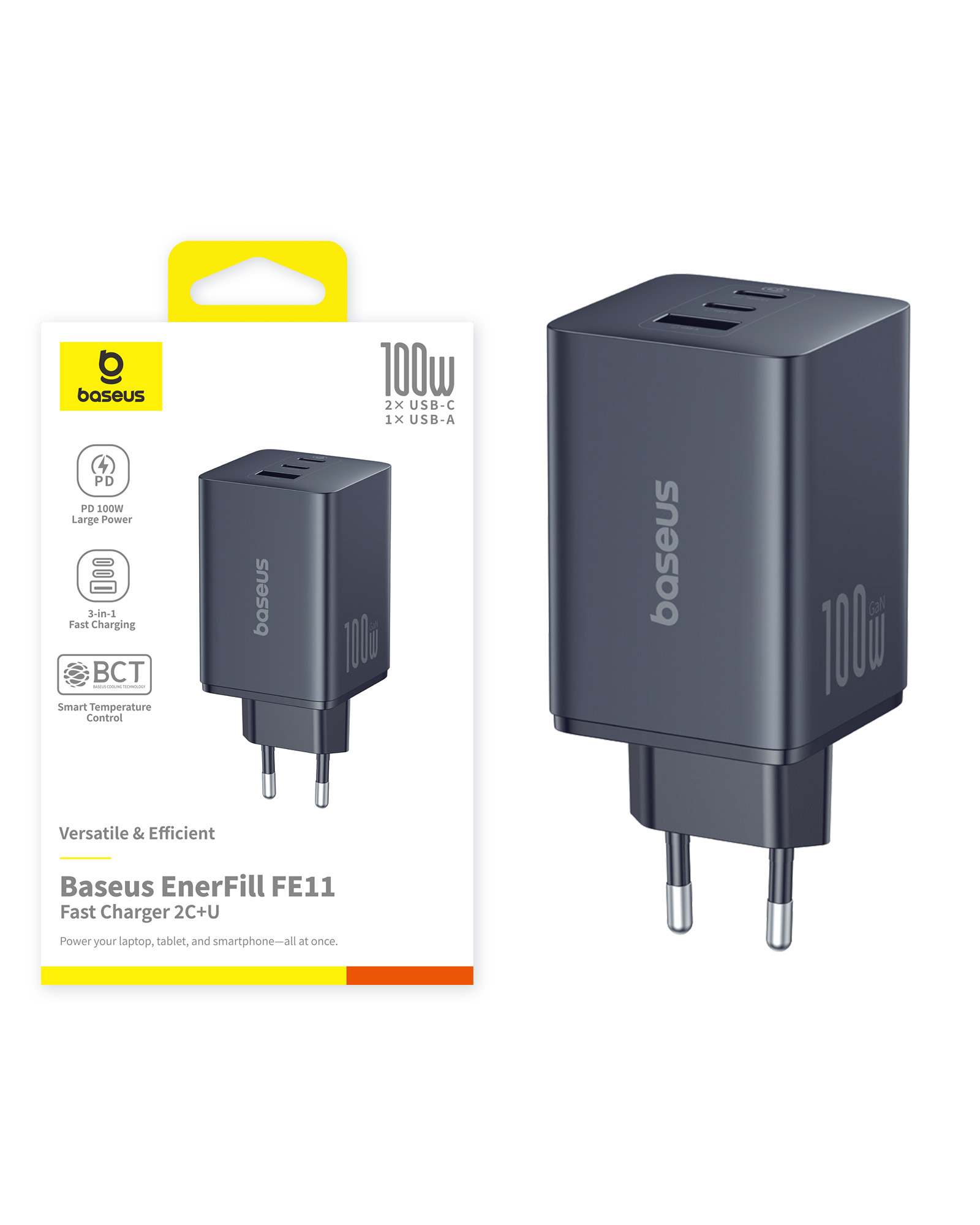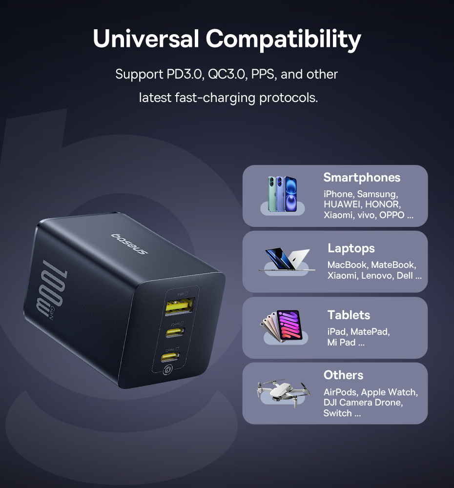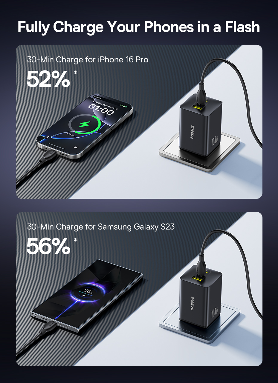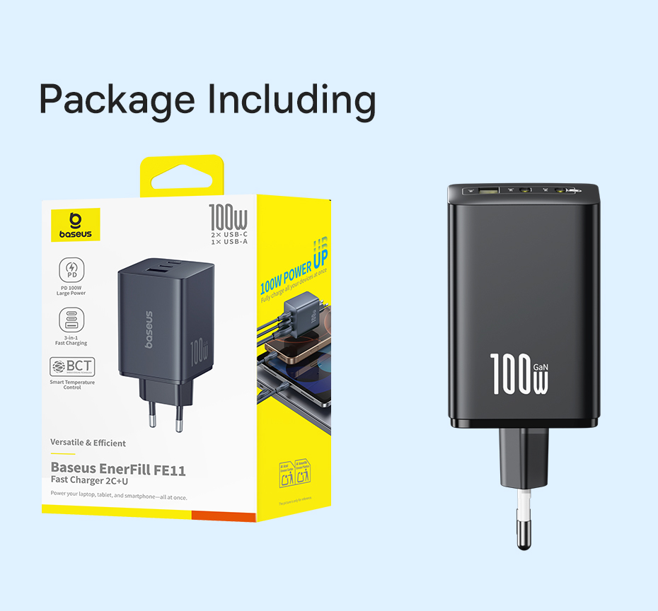 Сетевое зарядное устройство Baseus EnerFill 100W - это надежный и мощный аксессуар, который поможет вам всегда оставаться на связи и в полной готовности к новым приключениям.