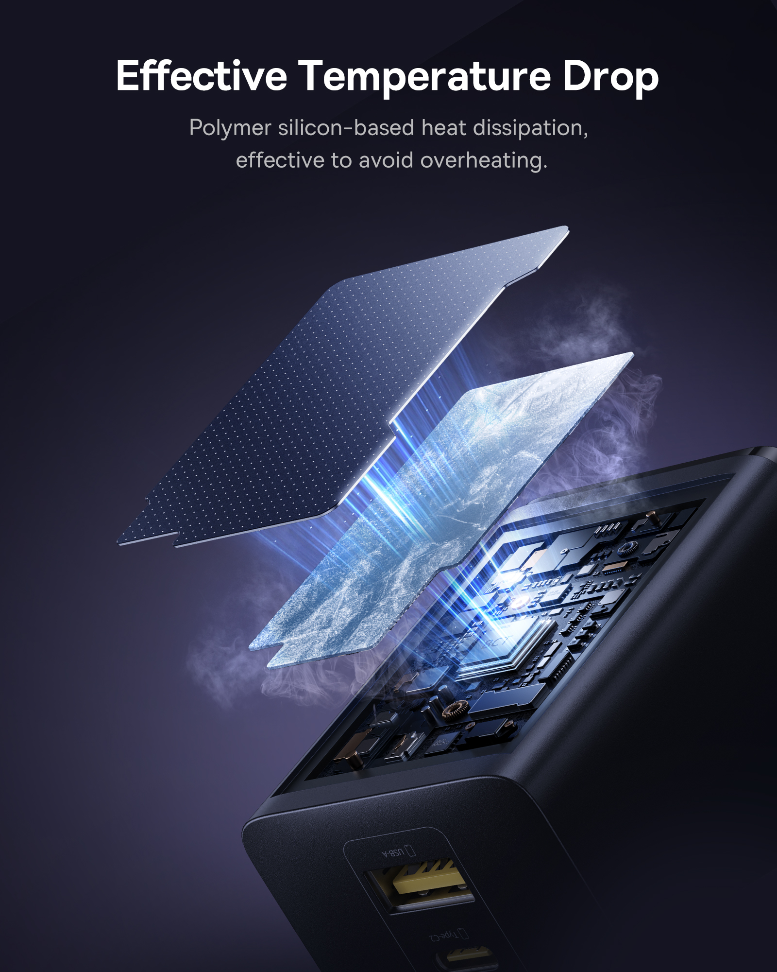 Устройство оснащено двумя портами USB-C и USB-A, что позволяет одновременно заряжать два устройства. Это особенно удобно, если вам нужно зарядить два устройства, например, смартфон и планшет.