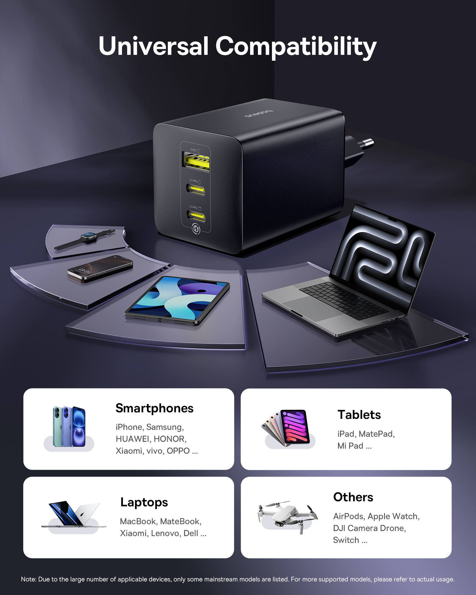 Сетевое зарядное устройство Baseus EnerFill 100W - это мощный и надежный аксессуар, который обеспечивает быструю зарядку ваших устройств. Благодаря двум портам USB-C и USB-A, вы можете одновременно заряжать два устройства, экономя время и энергию.