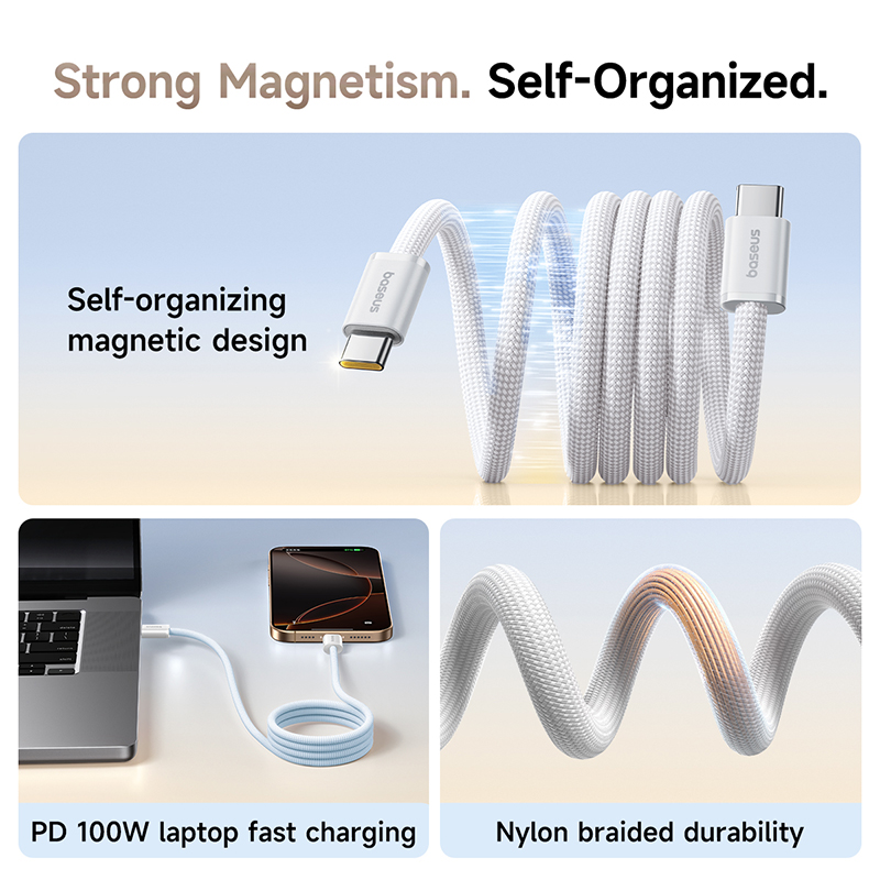 Кабель Baseus Dynamic 4 Pro оснащен интерфейсом USB-C на обоих концах, что позволяет подключать его к широкому спектру устройств, включая ноутбуки, планшеты, смартфоны и другие устройства с соответствующими разъемами.