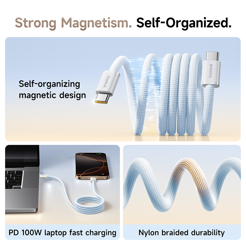 Кабель Baseus Dynamic 4 Pro оснащен разъемами USB-C на обоих концах, что позволяет подключать его к широкому спектру устройств, включая ноутбуки, планшеты, смартфоны и другие устройства с соответствующими разъемами.