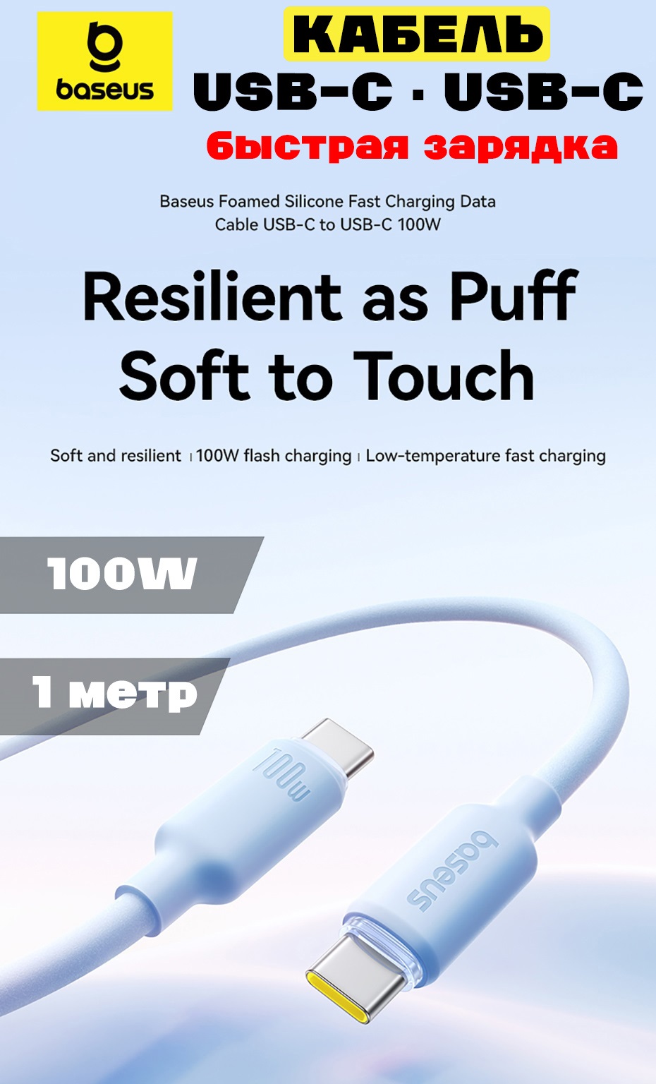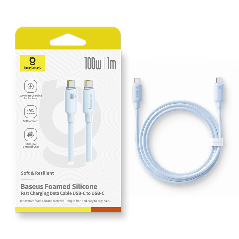 Кабель Baseus Foamed Silicone 100W USB-C to USB-C, 1 метр (E0426702) голубой