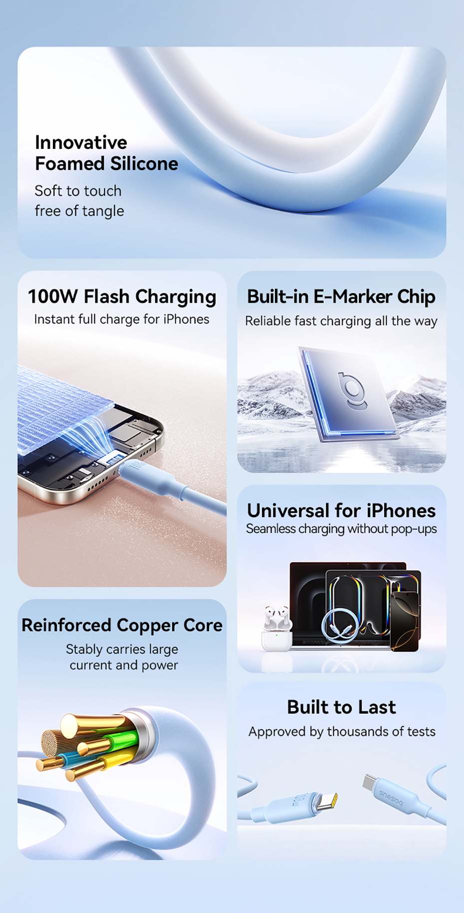 Кабель Baseus Foamed Silicone - это идеальное решение для тех, кто предпочитает комфорт и безопасность при подключении своих устройств. Он выполнен из высококачественного материала, который обеспечивает долгую службу и надежную работу.
