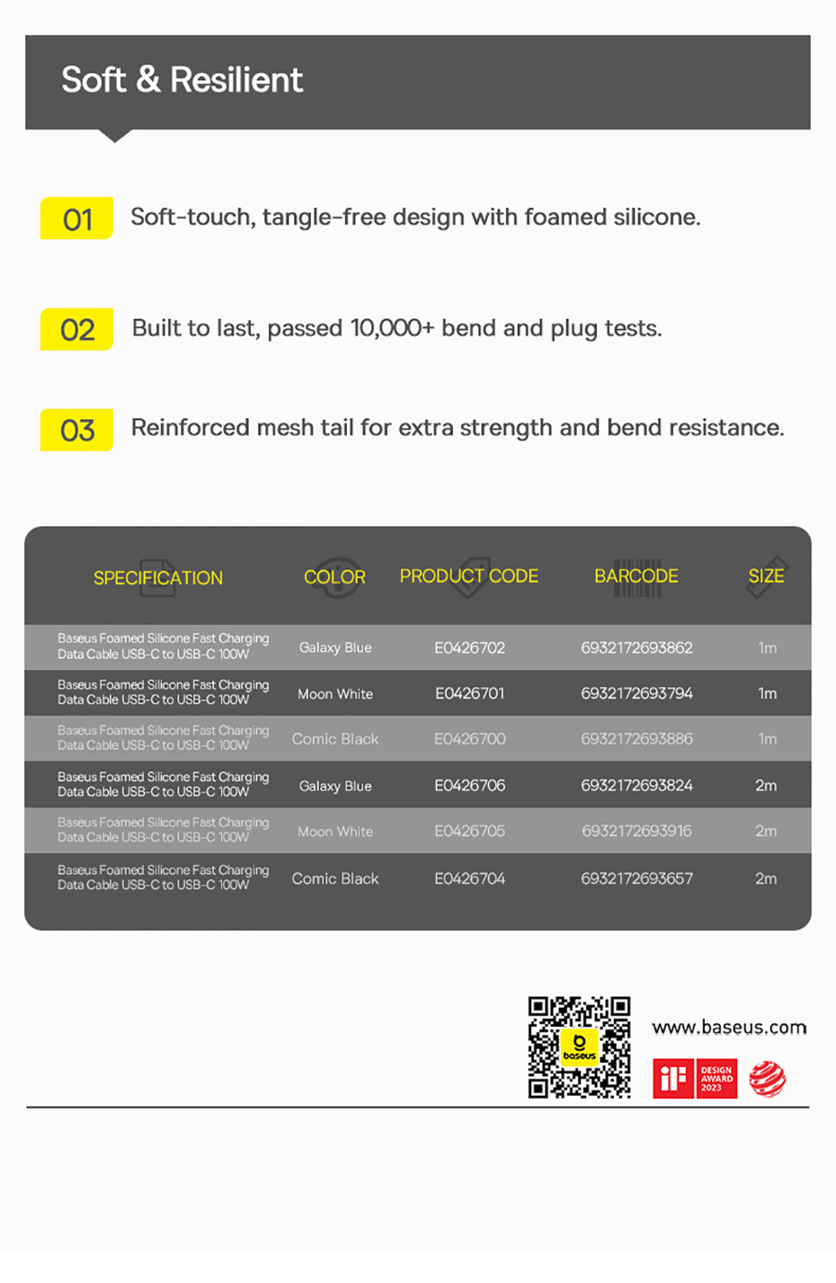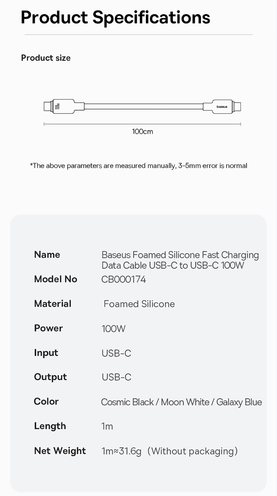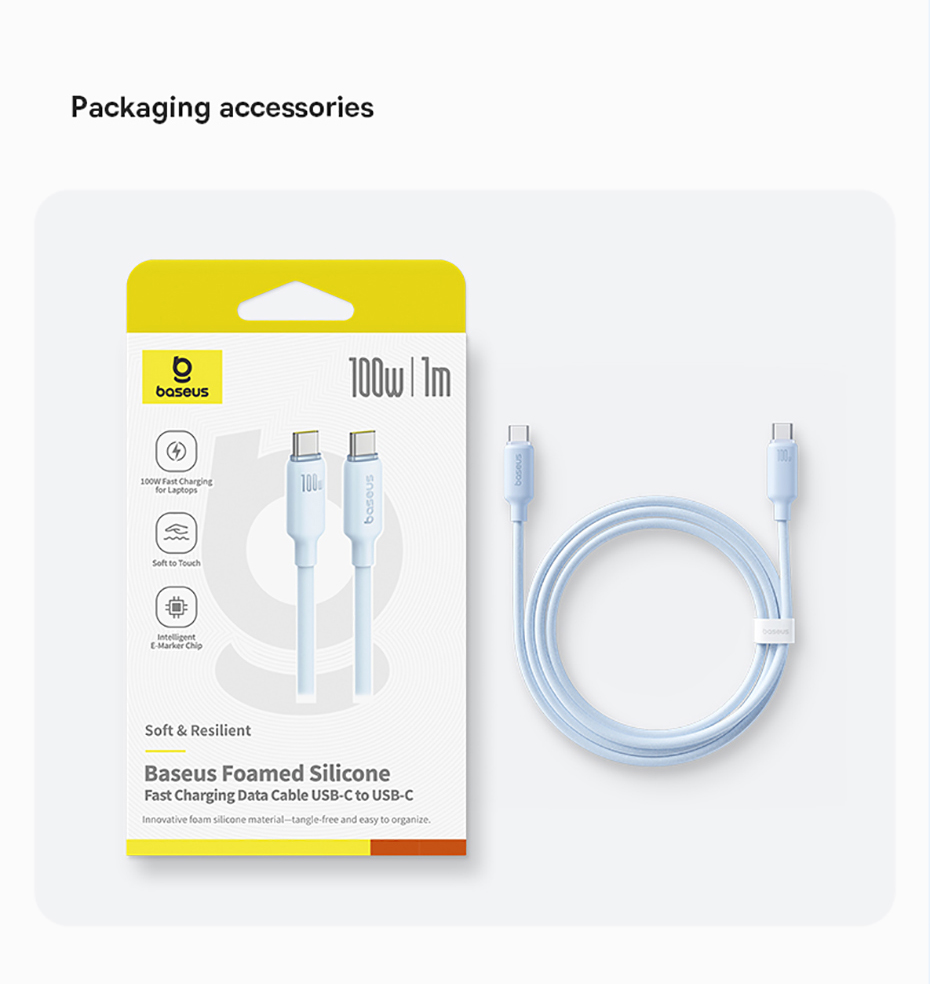Кабель Baseus Foamed Silicone имеет белый цвет, что делает его универсальным для любого интерьера и стиля. Он также легко помещается в сумку или карман, что позволяет взять его с собой в любое место.