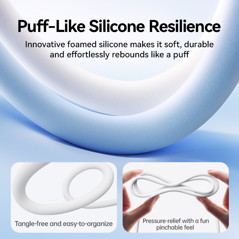 Кабель изготовлен из прочного и гибкого материала - foamed silicone, который обеспечивает долговечность и надежность в использовании. Благодаря этому, кабель не будет ломаться и перегибаться даже при частом использовании.