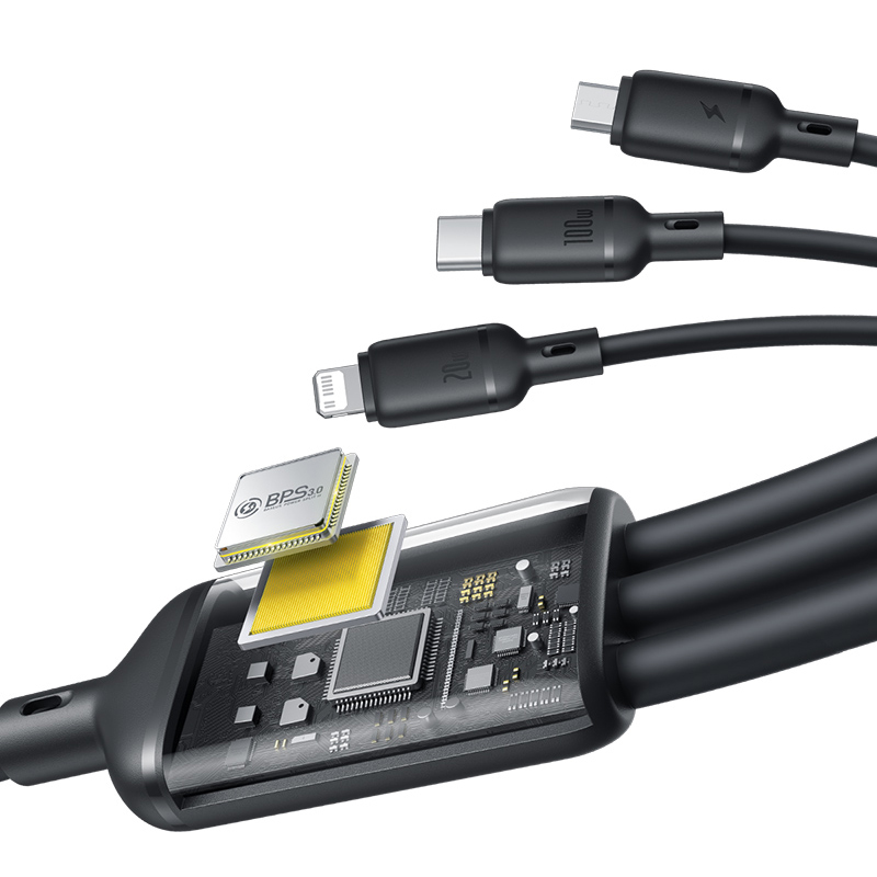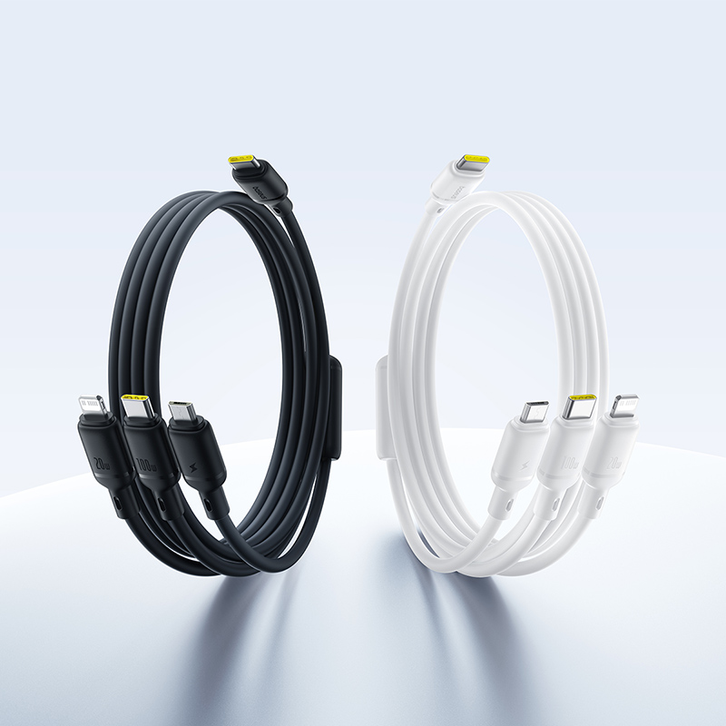 Кабель Baseus Silky 100W оснащен тремя разъемами: USB-A, USB-C и Lightning. Это позволяет использовать его для зарядки и синхронизации широкого спектра устройств, включая смартфоны, планшеты, ноутбуки и даже некоторые модели наушников.