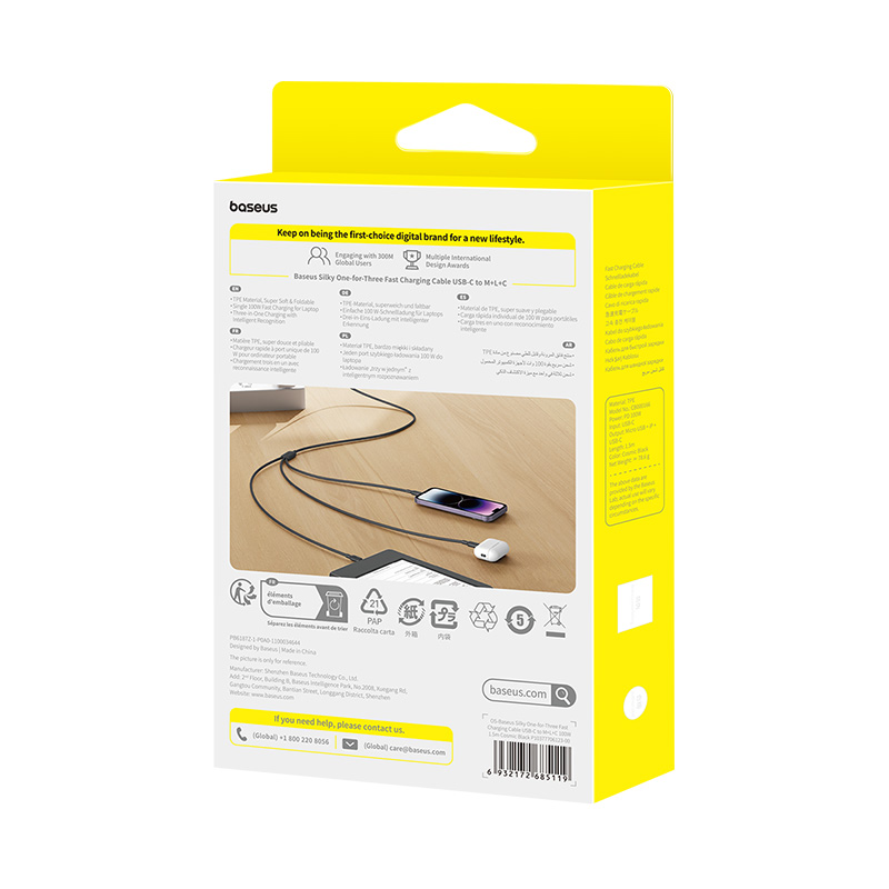 Выбирая кабель Baseus Silky 100W 3 в 1 "быстрая зарядка", вы получаете надежное и функциональное решение для быстрой и безопасной зарядки ваших устройств.