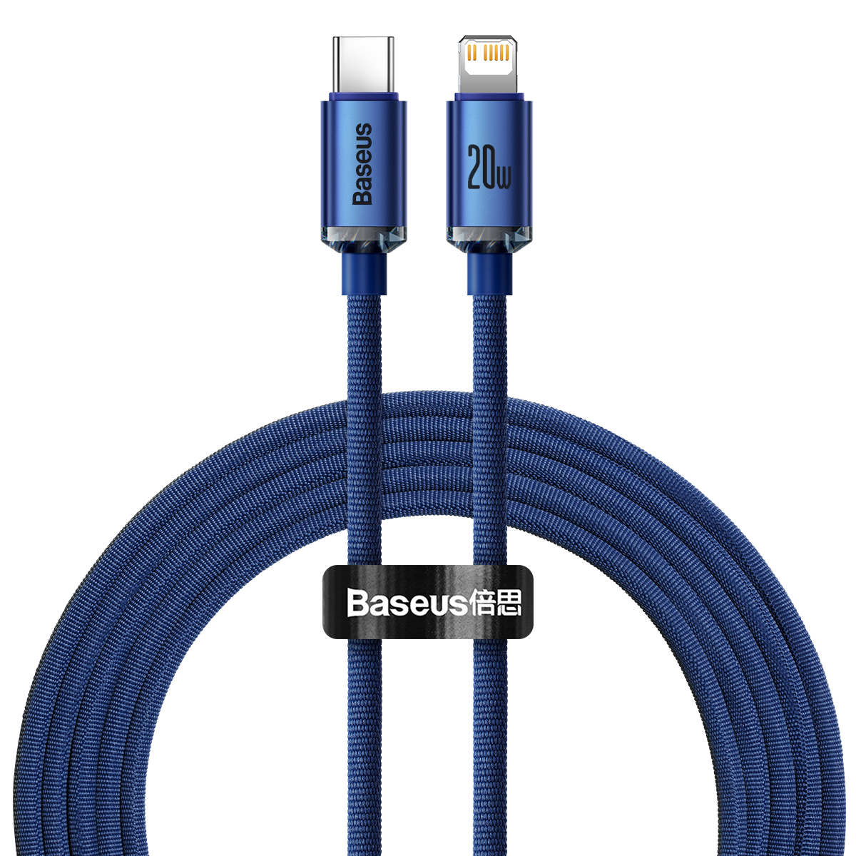 Кабель Baseus Type-C to Lightning 8pin 20W "быстрая зарядка" Crystal Shine (CAJY000303) синий - это высококачественный аксессуар, который обеспечивает быструю и безопасную зарядку ваших устройств.