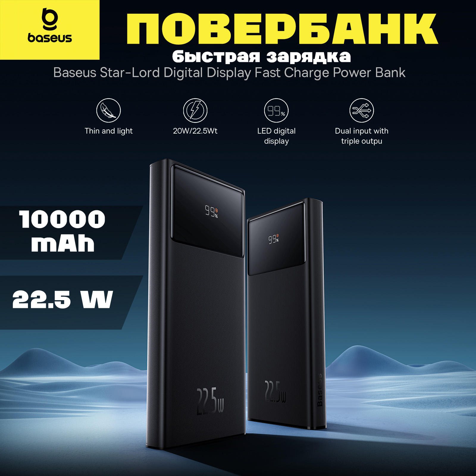 Повербанк Baseus Star-Lord Digital 22.5W - это надежное и функциональное устройство, которое станет незаменимым помощником в вашей повседневной жизни.