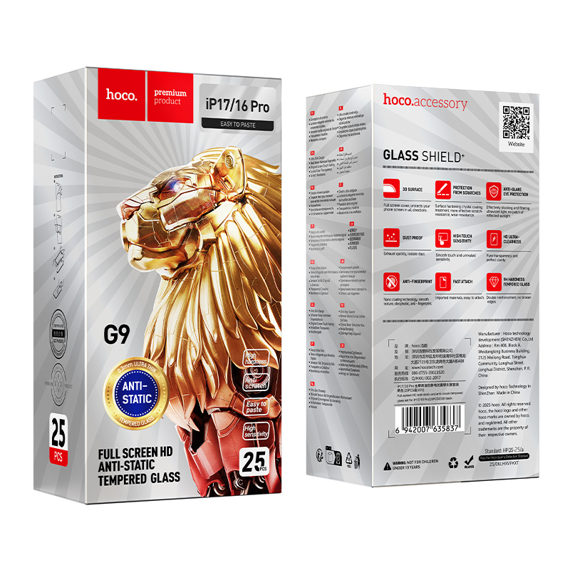 Выбирая защитное стекло HOCO G9 для своего iPhone 17/16 Pro, вы получаете надежную защиту экрана вашего смартфона, стильный аксессуар и уверенность в сохранности вашего устройства.