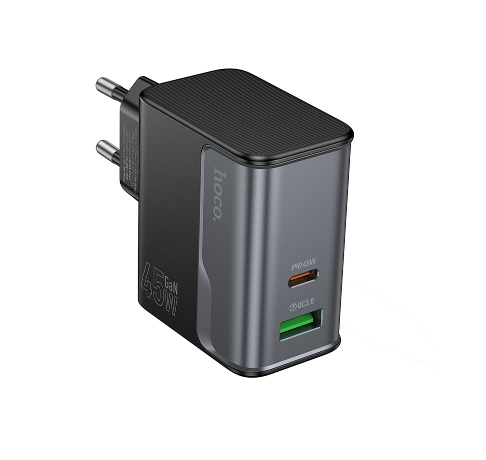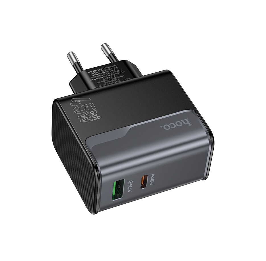 Сетевое зарядное устройство HOCO CS74A GaN45W, USB-C/USB-A "быстрая зарядка", черный