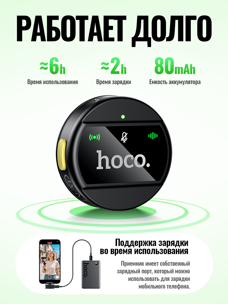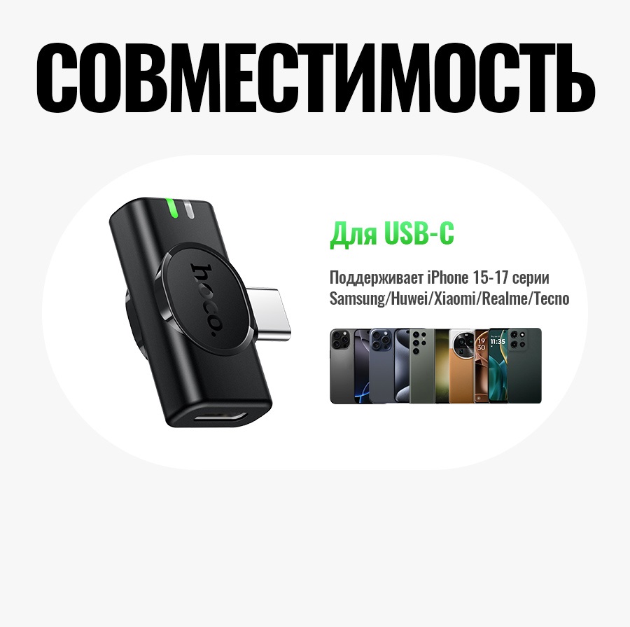 Выбирая беспроводной петличный микрофон HOCO L21 USB-C, вы получаете надежный и качественный аксессуар для записи звука, который станет незаменимым помощником в вашей профессиональной и творческой деятельности.