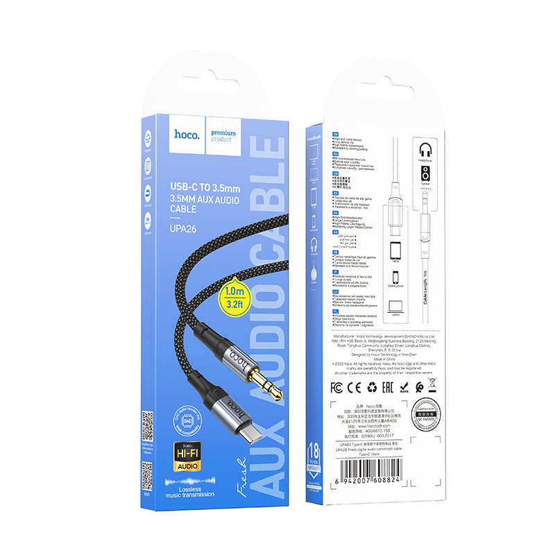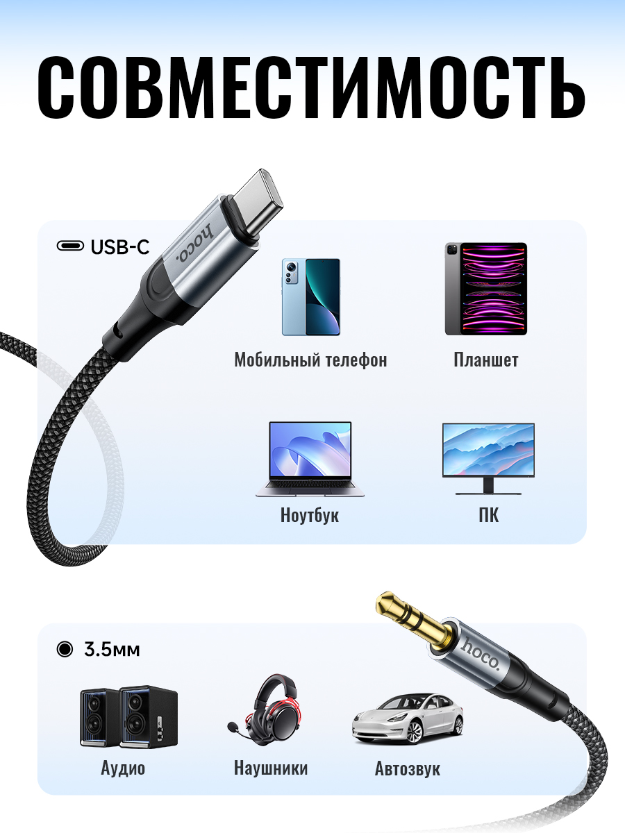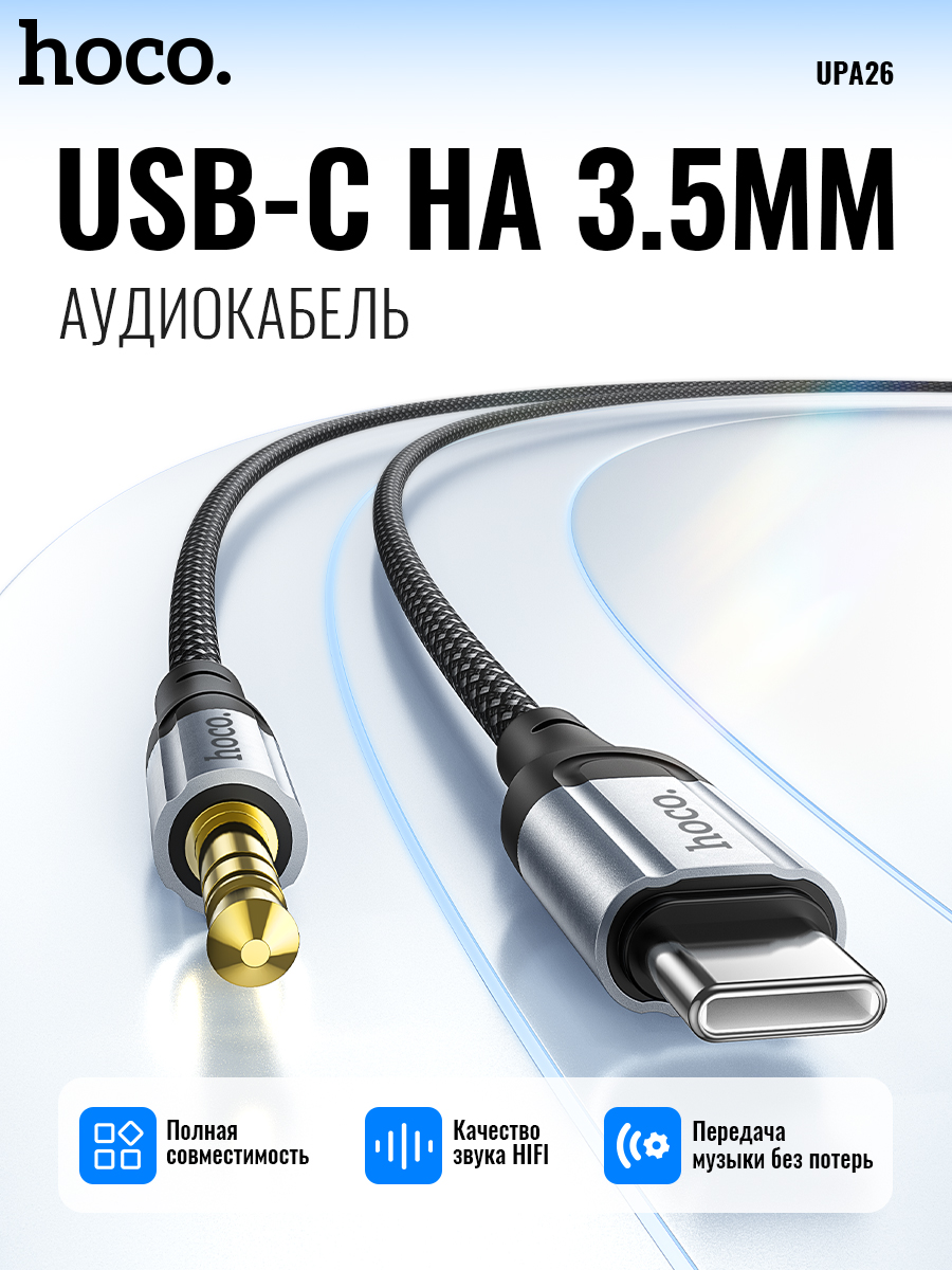 Переходник HOCO UPA26 AUX USB-C to 3.5mm - это надежное и удобное решение для подключения вашего устройства с USB-C разъемом к аудиосистеме с разъемом 3.5mm.