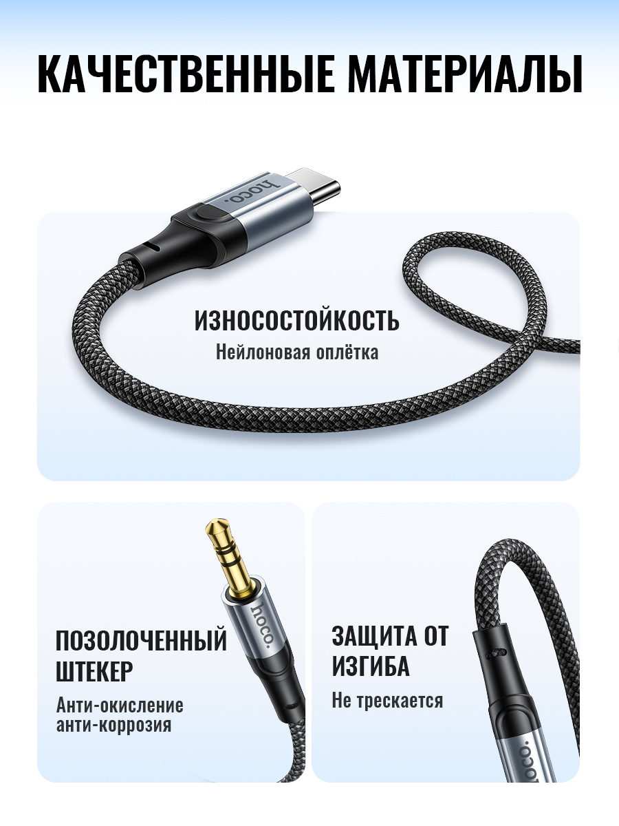 HOCO UPA26 AUX USB-C to 3.5mm выполнен в стильном черном цвете, который легко впишется в любой интерьер и не будет выделяться на общем фоне.