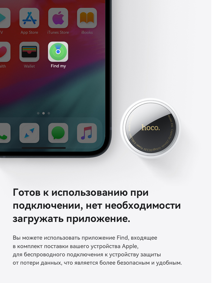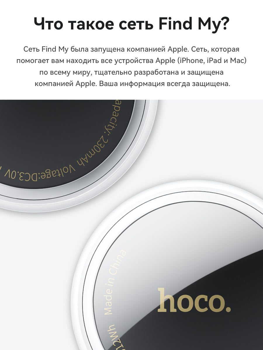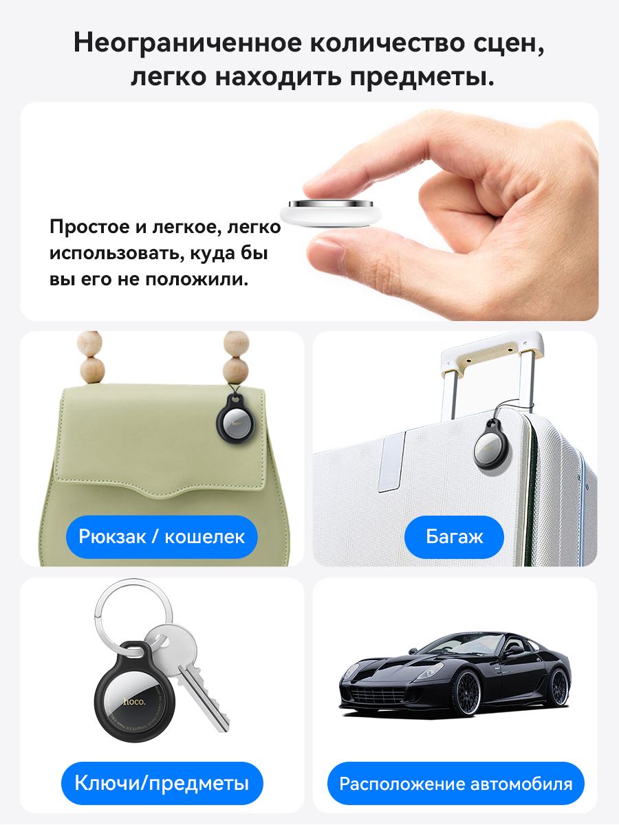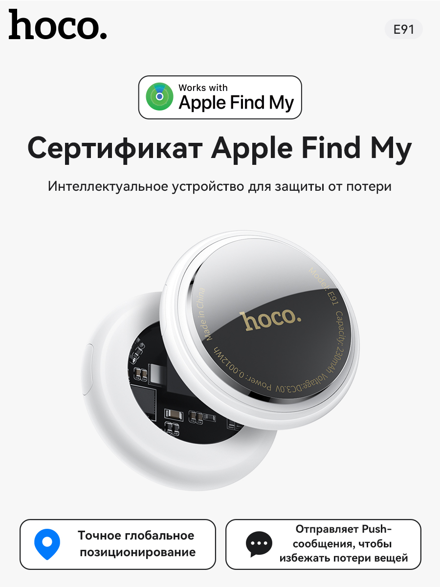GPS Трекер HOCO Tag E91 - 4 штуки в комплекте, работает только от iOS, белый