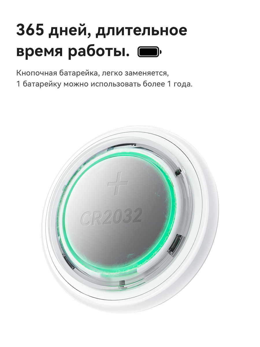 Для сброса настроек нажмите 4 раза быстро, пятый раз нажмите и удерживайте до проигрывания звукового сигнала. Bluetooth трекер для отслеживания работает от батарейки CR2032, емкость составляет 210 мАч, срок службы 9-12 месяцев.