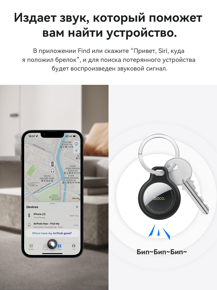Прикрепите gps маячок к ключам или рюкзаку и их станет видно на карте в приложении "Локатор". Можно отправить звуковой сигнал на встроенный в метку gps динамик, чтобы искать пропажу по звуку.