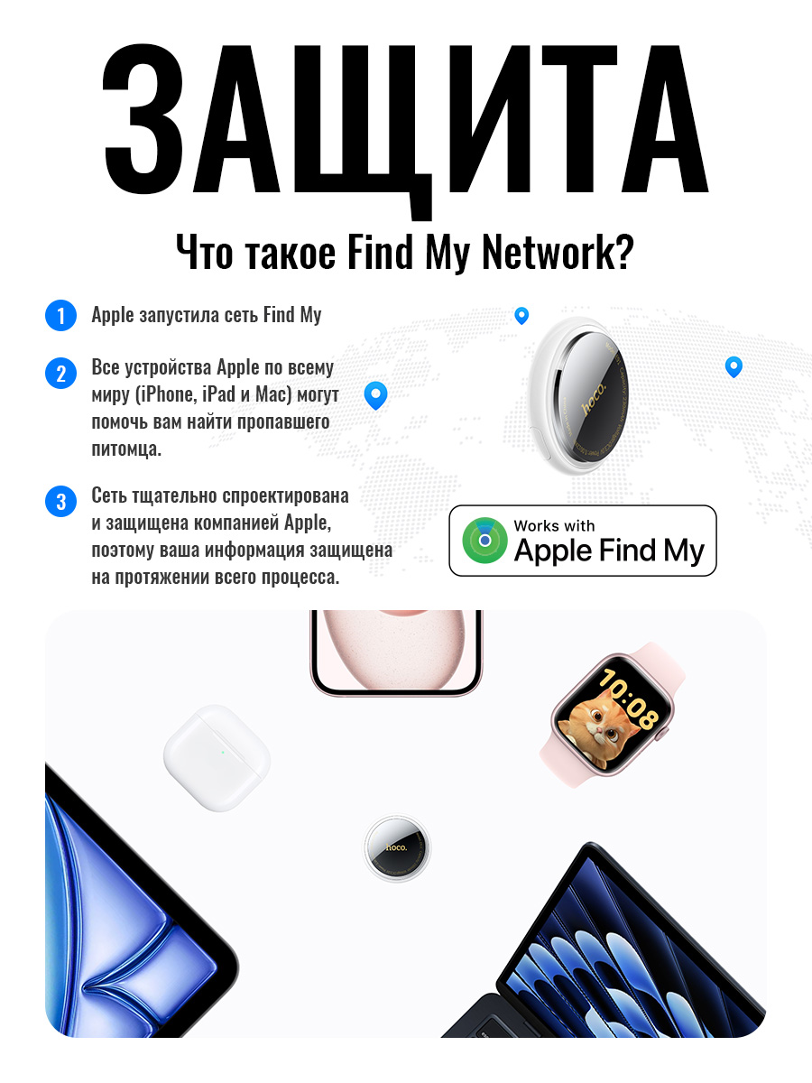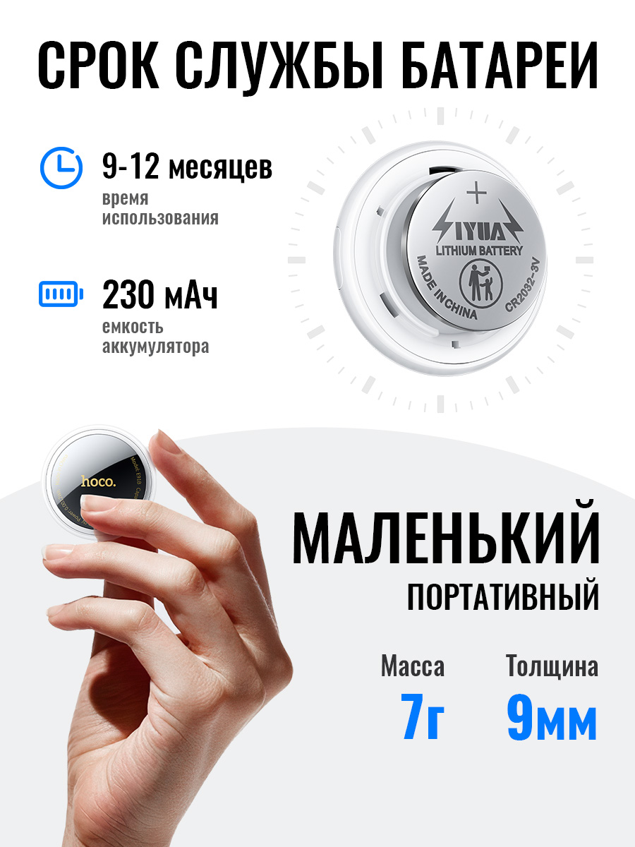 GPS Трекер HOCO Tag E91C - это надежное и удобное устройство для определения местоположения. Он работает только с устройствами на базе iOS, что делает его отличным выбором для владельцев iPhone и iPad.