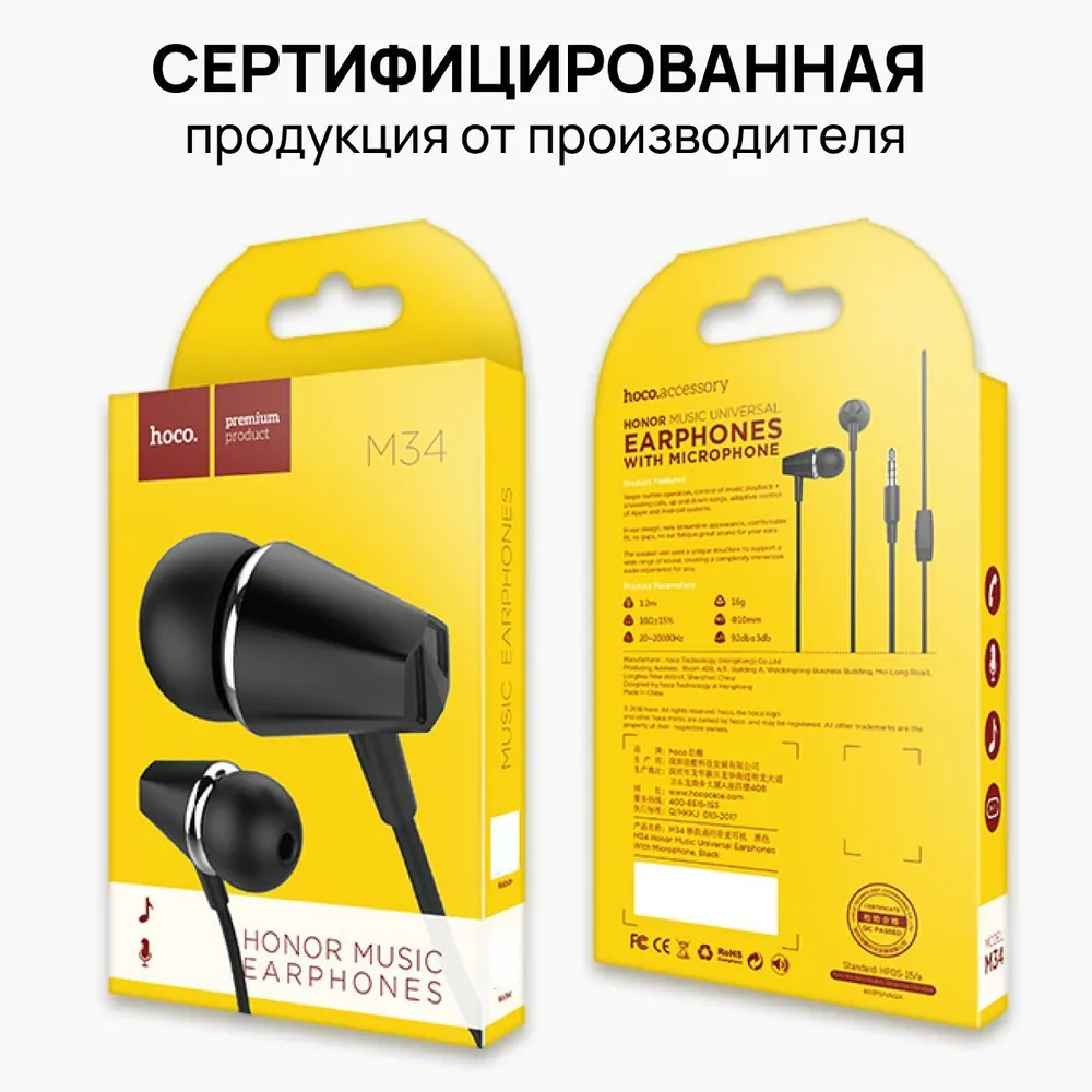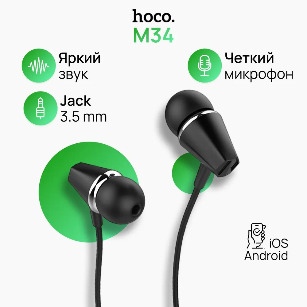 Наушники с микрофоном Hoco M34 подходит для любых цифровых мобильных устройств, имеющих разъем Jack 3.5.