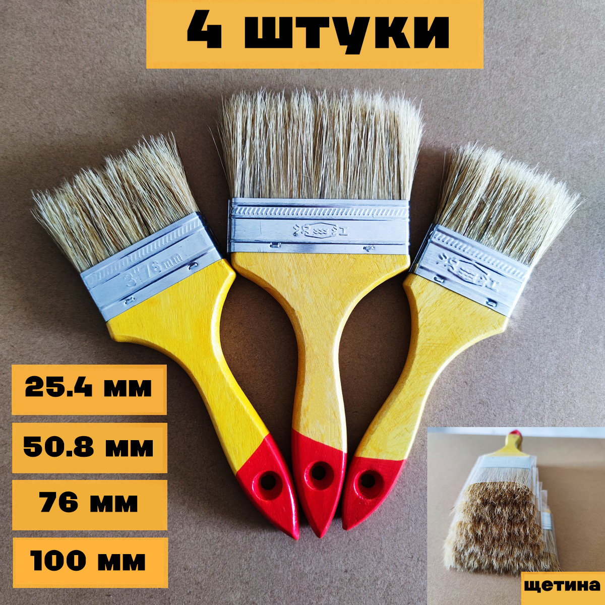 Кисть малярная RX набор 4 шт., 25.4 мм, 50.8 мм, 76 мм, 100 мм