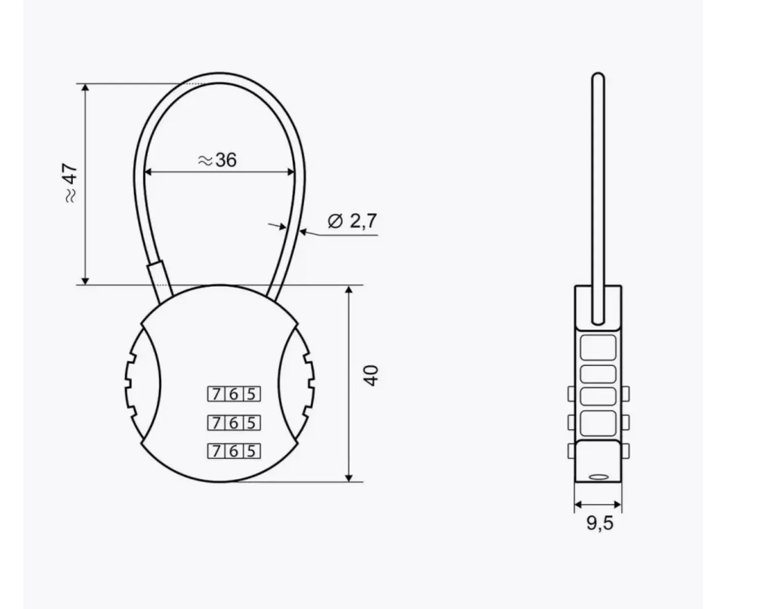 Замок навесной кодовый RX XL-706, 37x86x9мм, черный