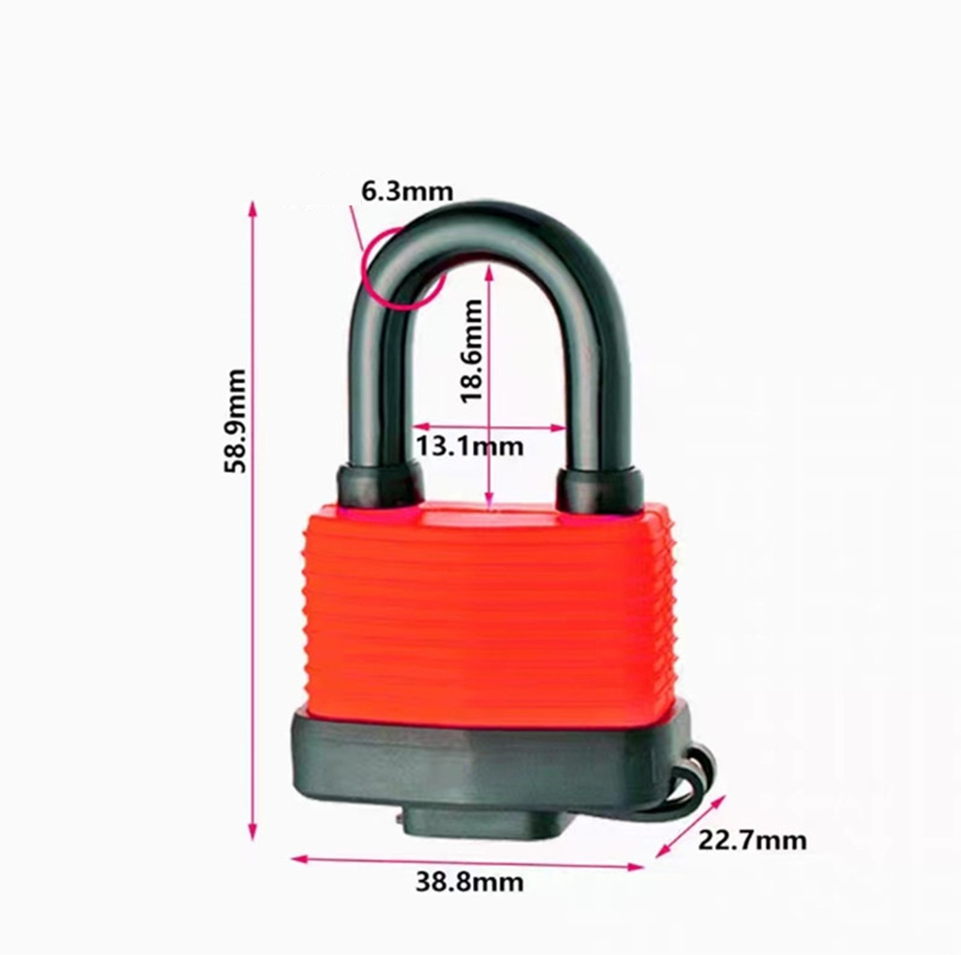Замок навесной RX 30 - корпус 58.9х38.8х22.7 мм, дужка 6.3 мм, 2 ключа
