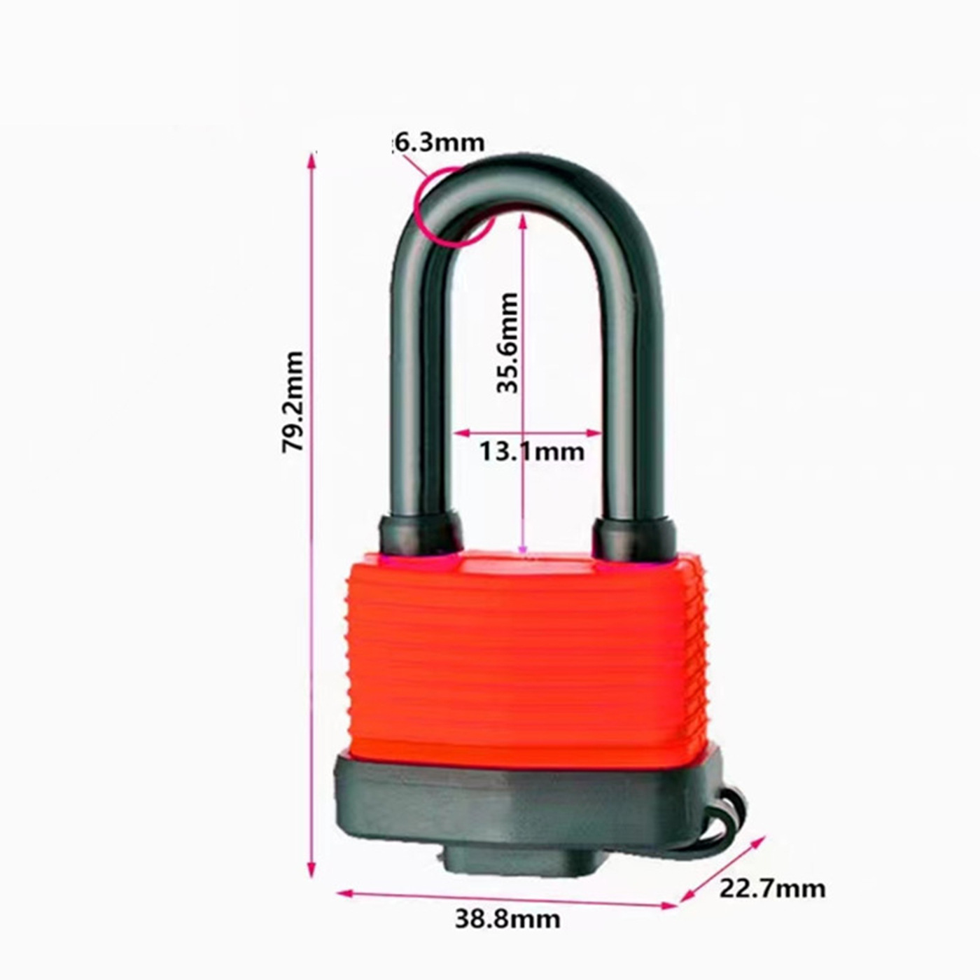 Замок навесной RX 30 - корпус 79.2х38.8х22.7 мм, дужка 6.3 мм, 2 ключа